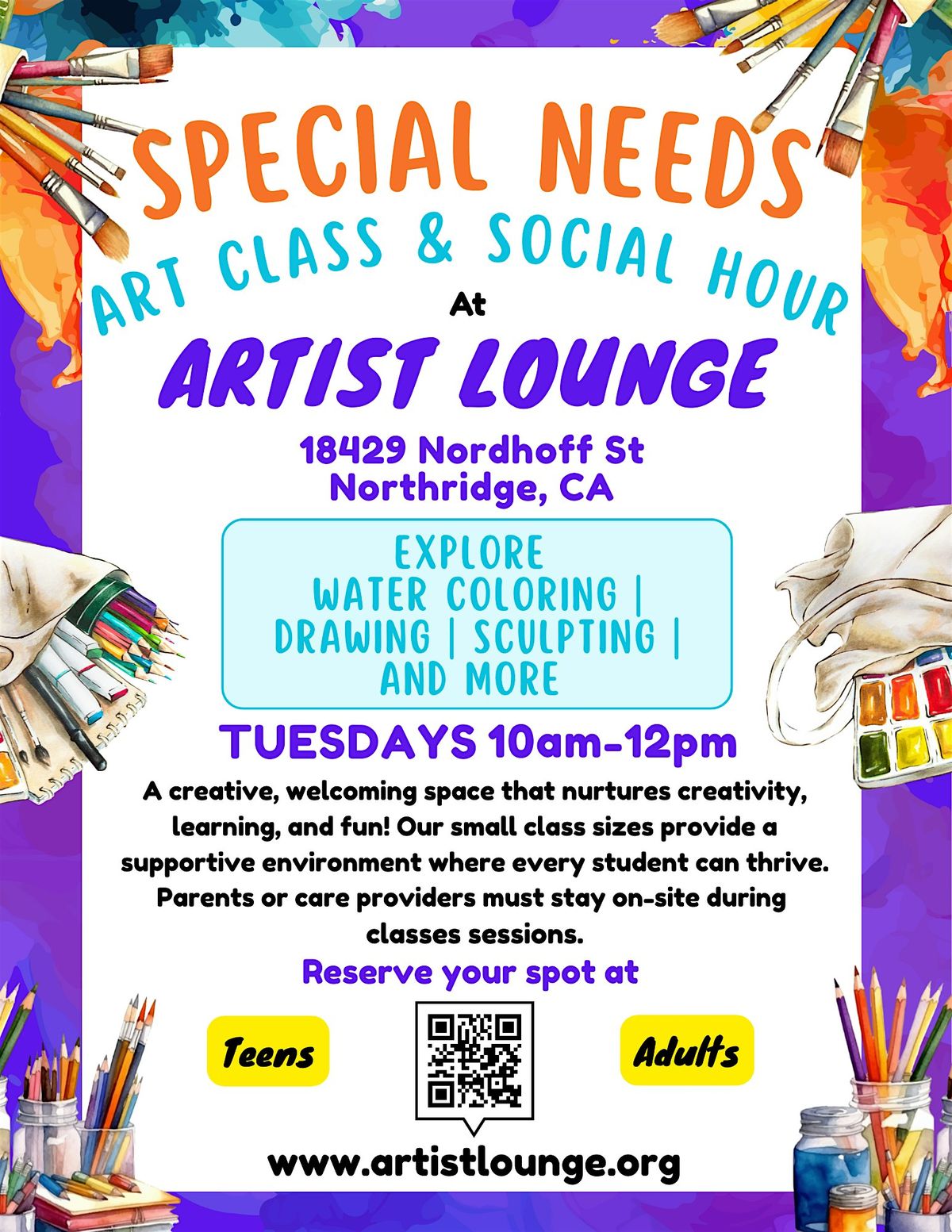Join us for a Special Needs Art Class & Social Hour at Artist Lounge π¨β¨
