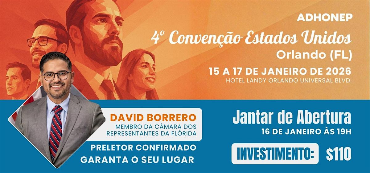 The Adhonep Convention in the United States will be held in the city of Orlando and will bring together businesspeople, professionals, influential figures, authorities from Brazil and the world.