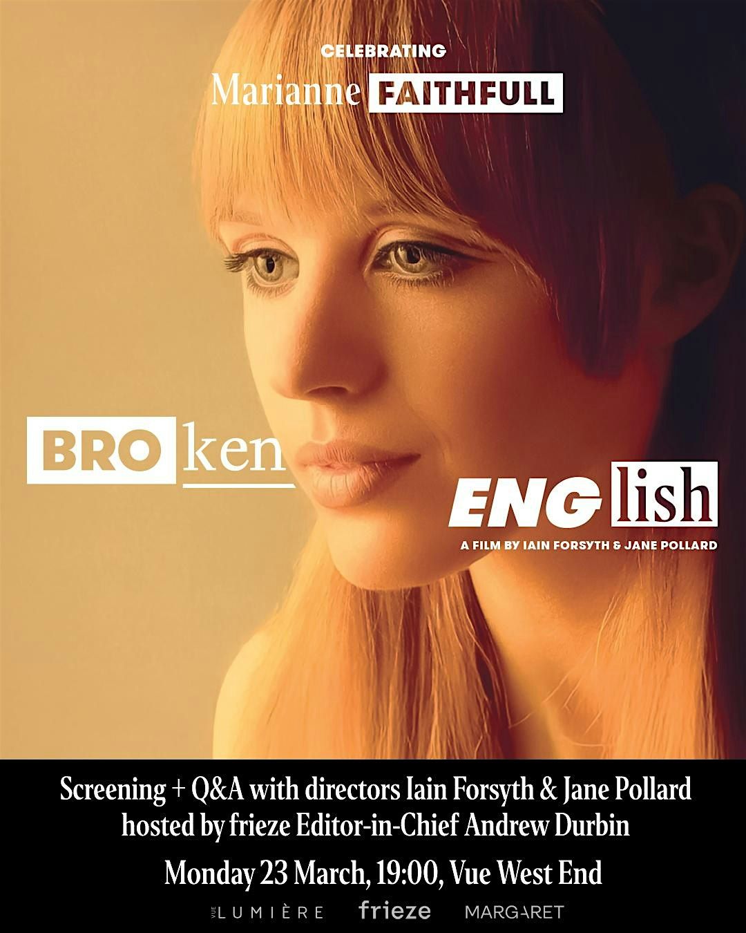 In addition to her last recorded performance, Broken English showcases intimate contributions from her friends and longtime collaborators, including Nick Cave, Warren Ellis, Courtney Love, Suki Waterhouse, Beth Orton, and Jehnny Beth. Additional cast include Zawe Ashton (The Marvels), Calvin Demba (Supacell), and Sophia Di Martino (Loki).