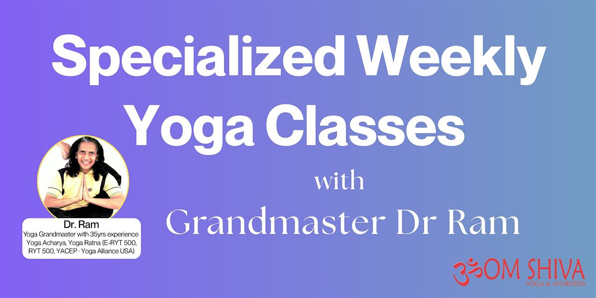 Join us at Om Shiva Yoga for a transformative series of 90-minute specialized classes led by the renowned Dr. Ram. With over 35 years of experience, Dr. Ram holds the prestigious titles of Yoga Acharya and Yoga Ratna (E-RYT 500, RYT 500, YACEP · Yoga Alliance USA).