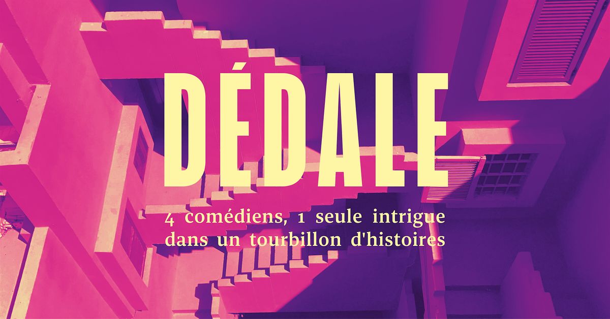 Vous choisissez les mots, ils construisent l’histoire ! Dans Dédale, les 3 comédien(ne)s vous embarquent dans un tourbillon d’histoires qui se croisent, se chevauchent et se relient finalement entre elles comme les fils d’une toile. Venez mettre au défi nos improvisateurs et déambulez avec eux dans ce dédale d’histoires improvisées !