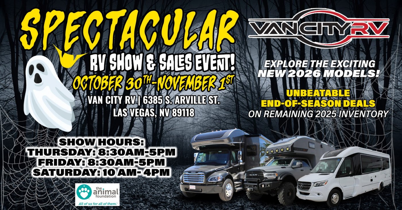 LAS VEGAS! Van City RV is hosting our 2025 Spectacular RV Show and sales event! Get a chance to explore the exciting new 2026 models - the latest and greatest from top manufacturers - and take advantage of unbeatable End-of-Season Deals on remaining 2025 inventory and more! This is the perfect time to upgrade your RV before the year ends! We will have factory representatives on-site to answer questions and showcase what makes these models stand out!