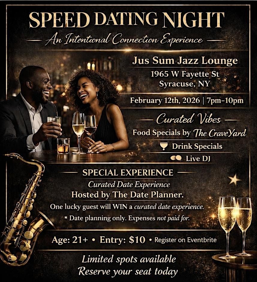 Ready to get offline and meet someone real? Join us at Jus Sum Jazz Lounge for an elevated Speed Dating experience designed for Syracuse singles who are tired of the apps and ready for some real chemistry.