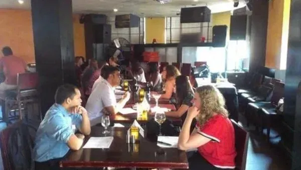 8. For the dating session, we seat one man across from each woman. Then, we rotate each man to the next woman, until each man has met each woman present. Please try to speak loud, since everyone would speak at the same time.