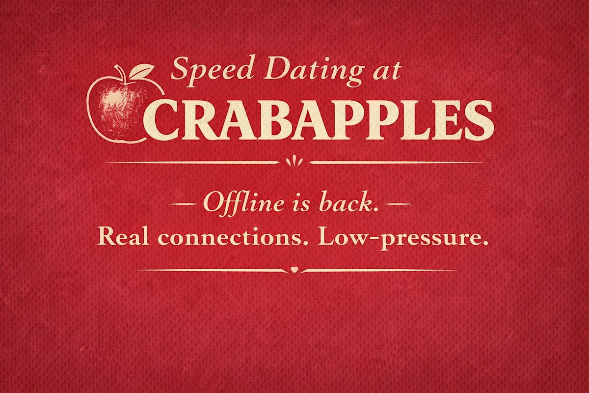Join us at Crabapples for a relaxed, comfortable night of speed dating designed to feel easy and fun. This event focuses on short, one-on-one conversations in a structured format that takes the pressure off meeting someone new.