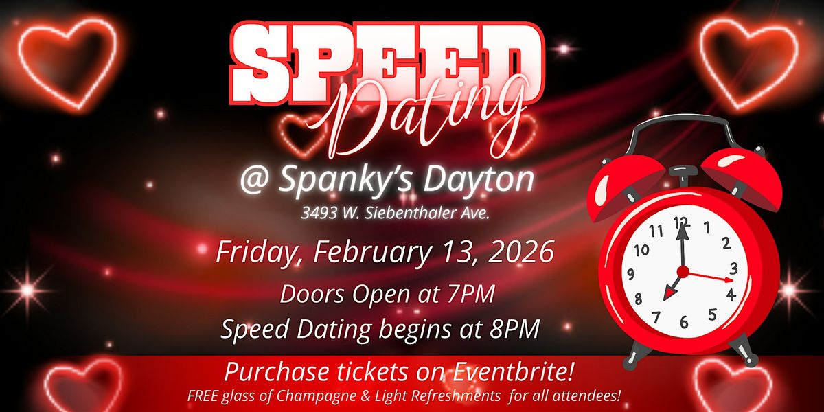 Ready to meet new people? Join us for Speed Dating at Spanky's Dayton! This fun, in-person event is the perfect way to connect and spark some chemistry. Purchase your ticket today to secure your spot and get ready for an exciting evening of quick chats and new possibilities!