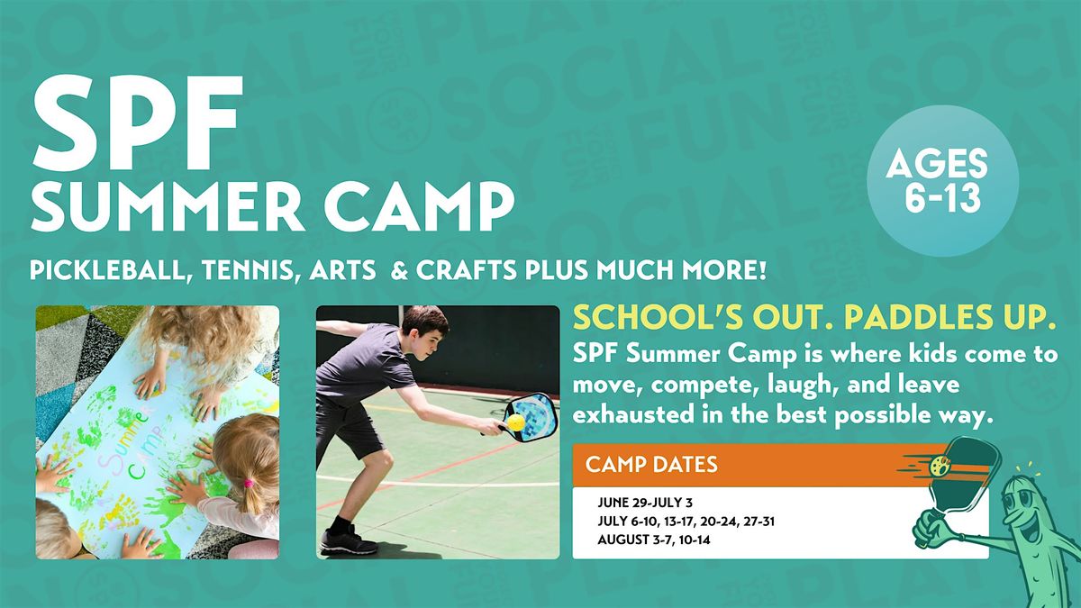 SPF Summer Camp is where kids come to move, compete laugh and leave exhausted in the best possible way. Our camps combine structured pickleball coaching, game play and off-court fun to keep kids active all summer long. Perfect for ages 6-13.