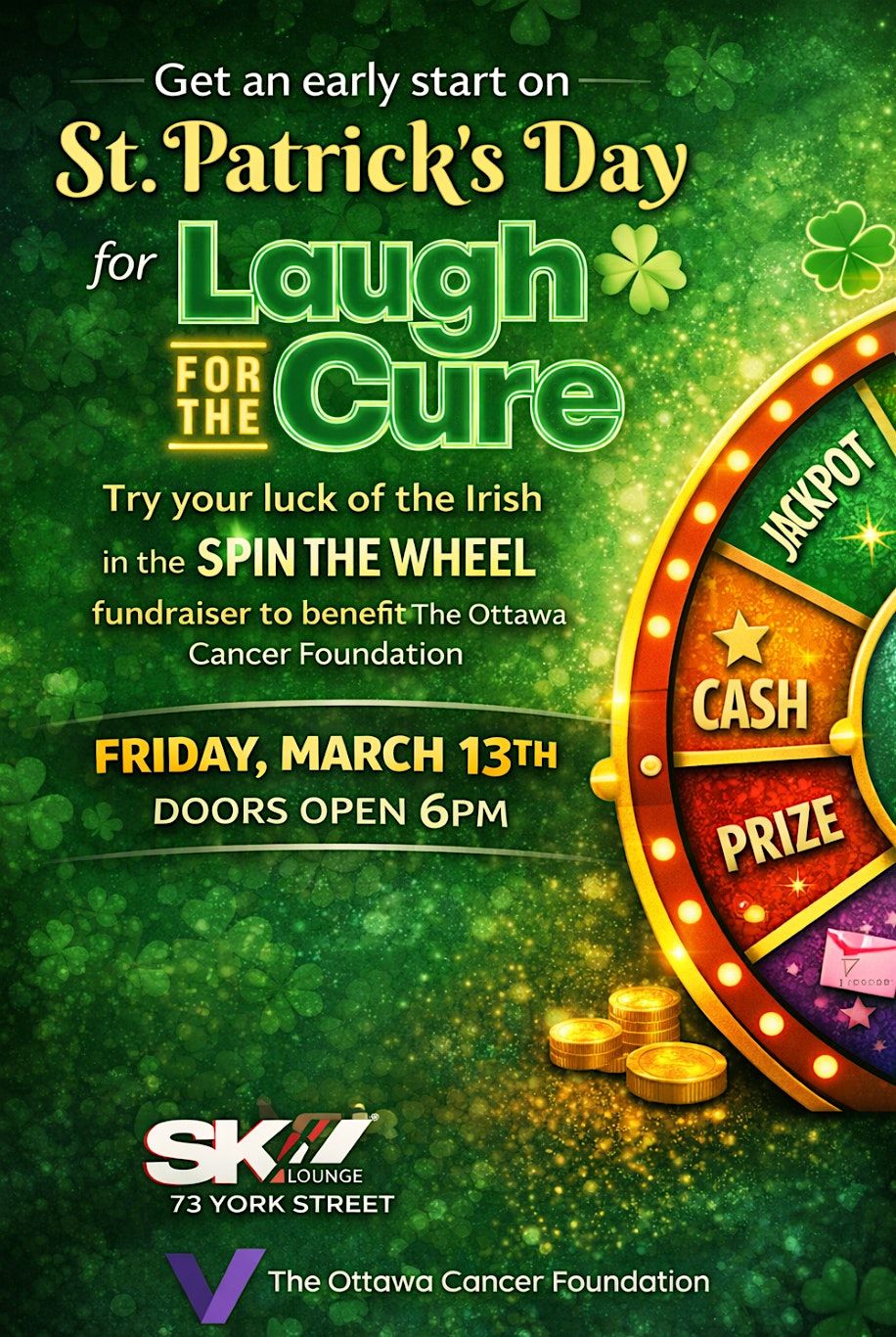 On Friday, March 13th, I’m hosting an early start to St. Patrick’s Day at Sky Lounge, in support of Laugh for the Cure and the Ottawa Cancer Foundation.