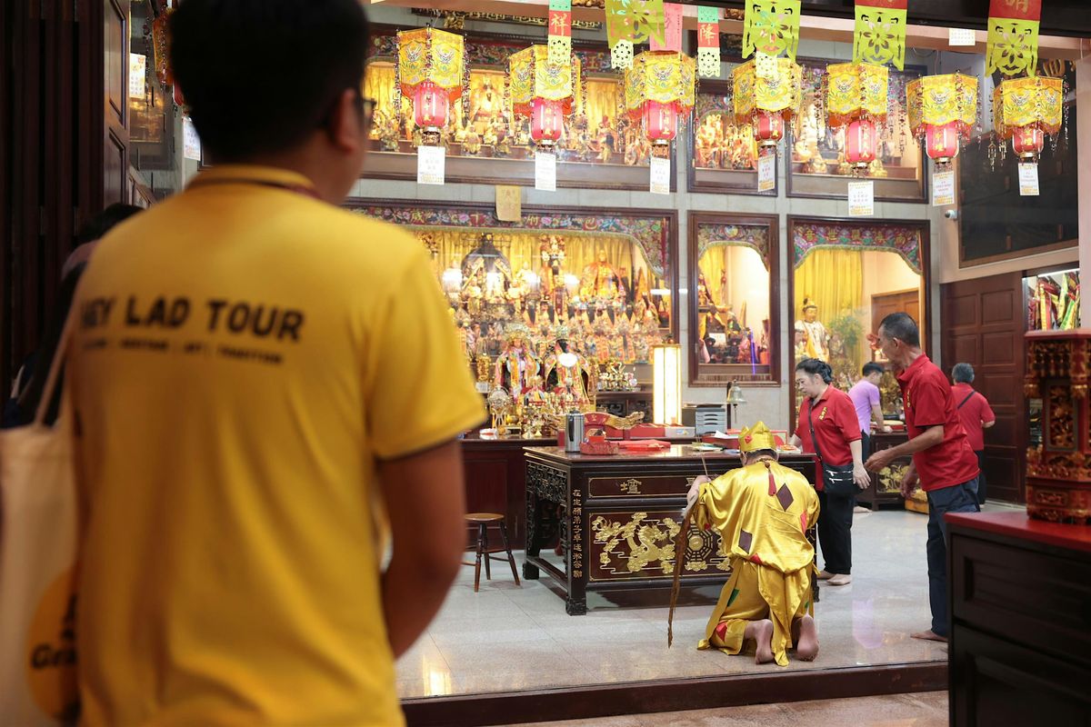 Have you heard about Chinese Spirit Medium and Gods‘ possession? Get your chance to go behind the scene and witnessed the consultation carried out by this tang - ki aka Chinese Spirit Medium. Hear from our guide his first hand experiences as he shares passionately about this intangible cultural heritage rooted deeply in Singapore - a metropolis city. Get ready for a whole new experience and as you look into the life of the so - called “chosen one”. If you are in for it, you may even consider staying behind for one personal session too.