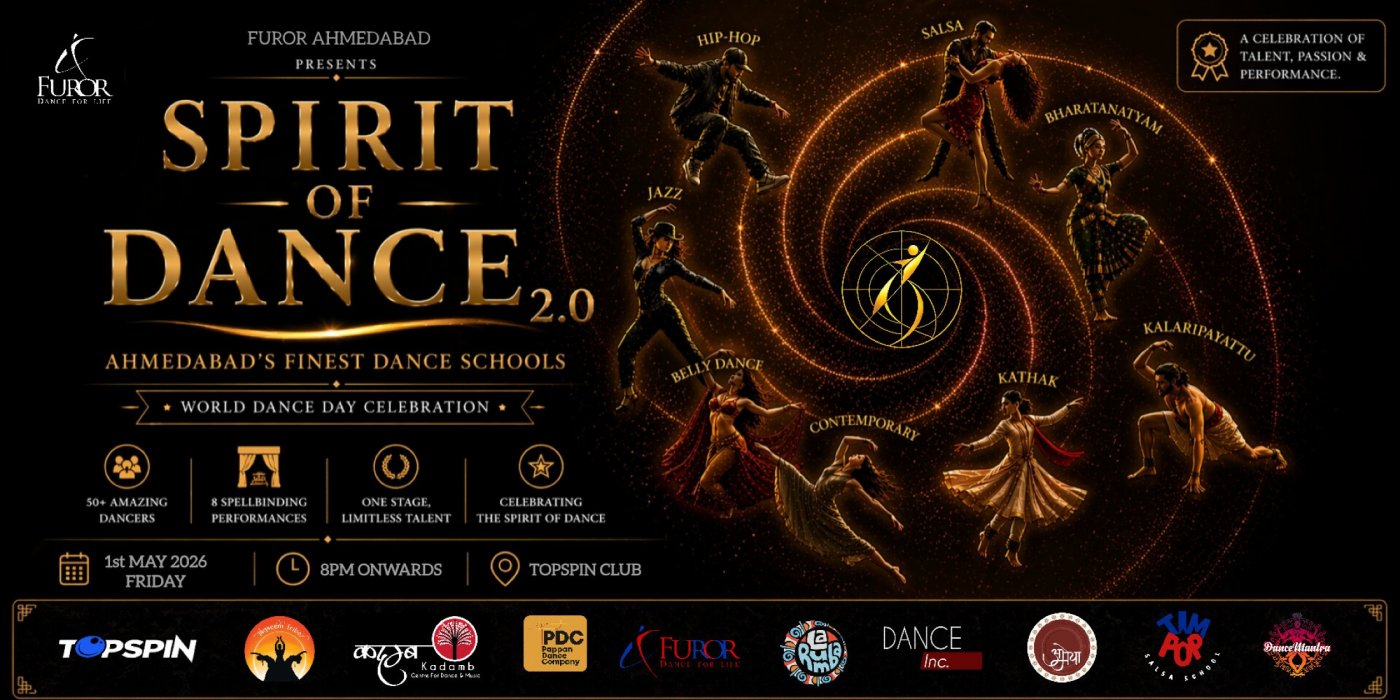 Organized by Furor Ahmedabad and conceptualized by Jayvir Mehta, this showcase brings together Ahmedabad’s finest dance schools in a powerful confluence of styles - from the grace of Bharatanatyam & Kathak, to the energy of Hip-Hop, the fluidity of Contemporary & Jazz, the rhythm & vibrance of Salsa, the expression of Belly Dance, and the strength of Kalaripayattu.