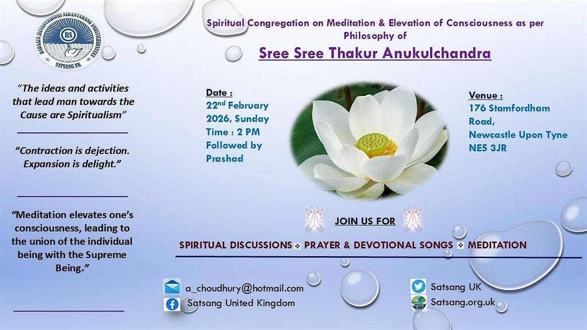 Join Our Spiritual Congregation on Meditation and Elevation of Human Consciousness based on the philosophy of Sree Sree Thakur Anukulchandra.