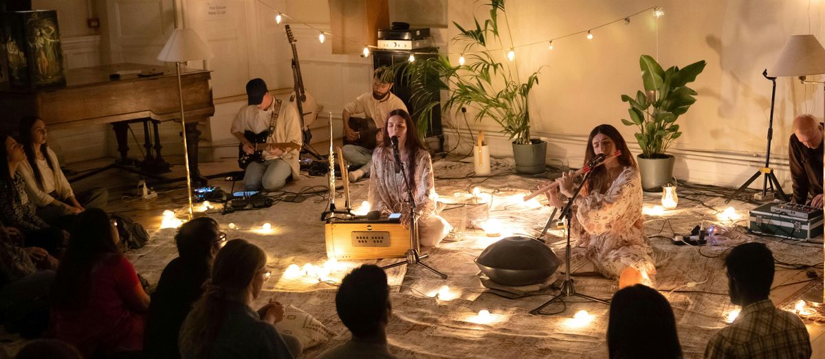 Im Mittelpunkt dieses Projekts steht die Kirtan-Meditation, bei der Menschen gemeinsam Mantras singen.