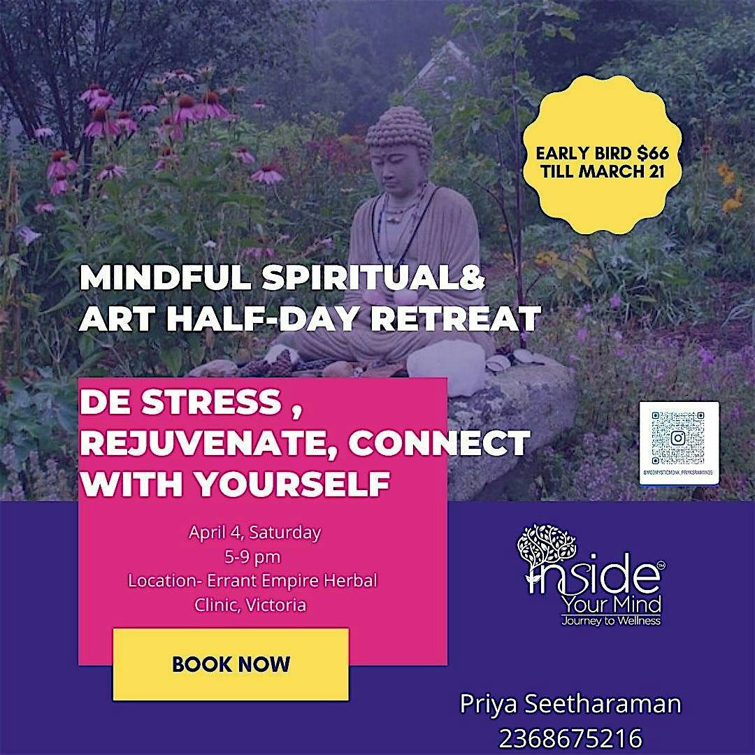Ready to recharge& destress? Join us for a half day retreat filled with spiritual vibes, mindfulness, and creative art sessions. This in-person gathering is the perfect chance to unwind, connect with like-minded souls, and let your creativity flow. Whether you're looking to relax, reflect, or express yourself, this retreat offers a cozy and inspiring environment. Don't miss out on this refreshing experience!