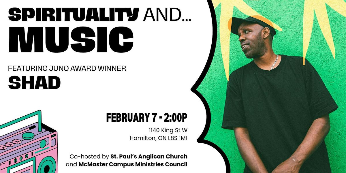 McMaster’s Ecumenical Chaplaincy and the Campus Ministries Council invite you to our new speaker series, “Spirituality and...”, where we’ll explore how our spiritual lives intersect with all the other interests and aspects of life that make us, us! Our first speaker is Juno-award-winning Canadian-Rwandan rapper Shad, tackling the topic of “Spirituality and Music”. Join us for a fireside chat hosted by ecumenical chaplains Charles Meeks and Marlice Simon!