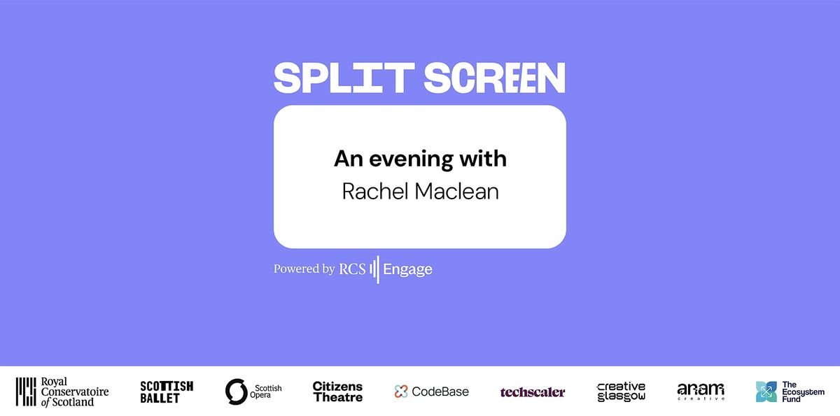 Split Screen is led by the Royal Conservatoire of Scotland (RCS) in partnership with Scottish Opera, Scottish Ballet, Citizens Theatre, CodeBase, Techscaler, Creative Glasgow, and anam creative.