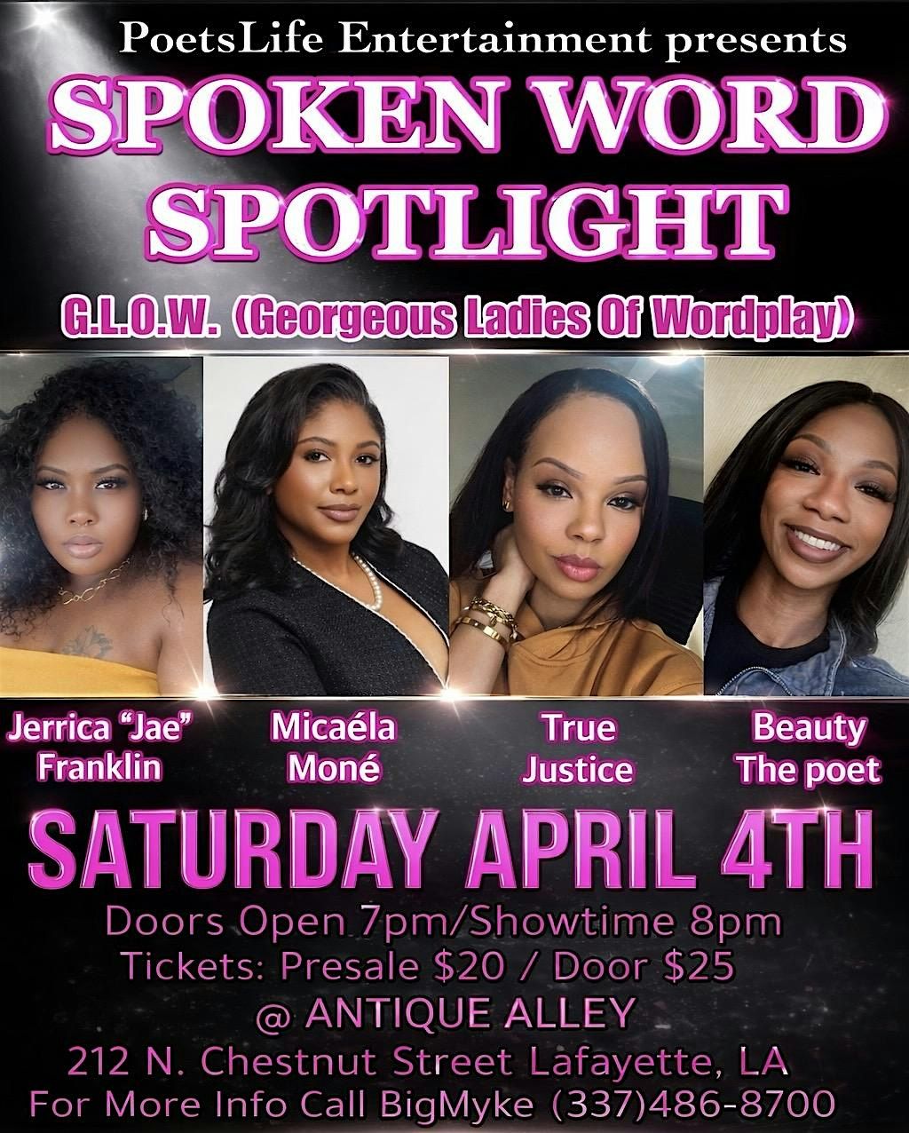 Featuring 4 of the Best Female Poets from the state of Louisiana: True Justice, Jerrica “Jae” Franklin, Micaela Simpson, & Beauty The PoetAbout this Event