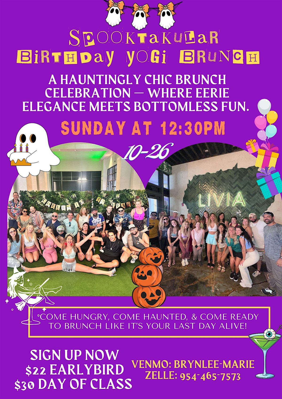 🎃 Brynlee’s Spooktacular Birthday Yogi Brunch 👻 – Where eerie elegance meets bottomless brunch vibes! ☀️🧘♀️🥂
