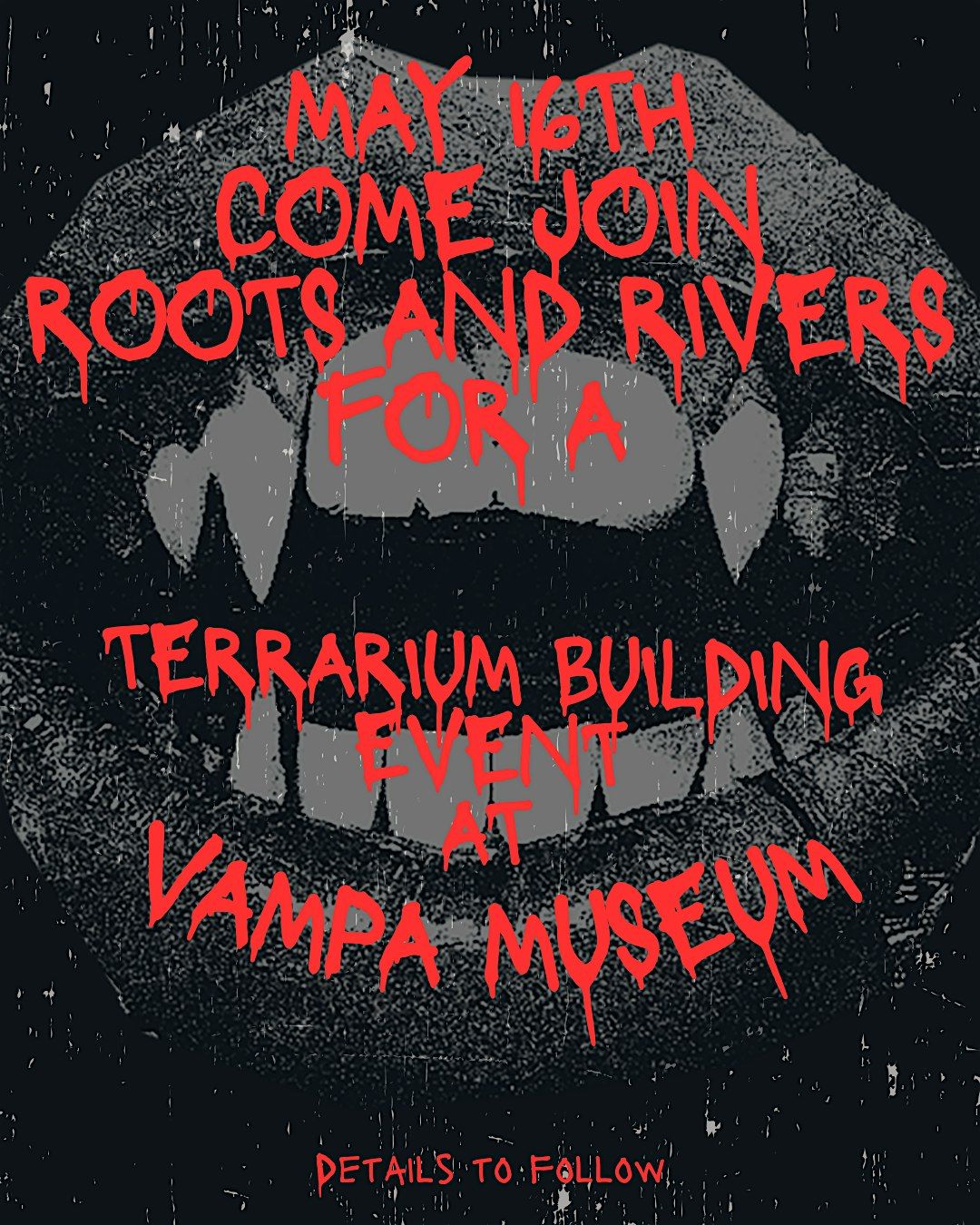 Come join us at Vampa Museum for a terrarium building workshop. Create your own terrarium with spooky décor and learn about how these small ecosystems work.