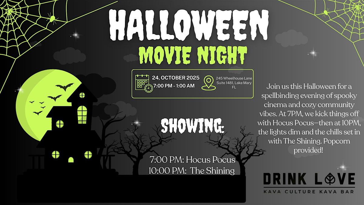 Join us this Halloween for a spellbinding evening of spooky cinema and cozy community vibes. At 7PM, we kick things off with Hocus Pocus—a kid-friendly classic full of witches, mischief, and magical mayhem. Then at 10PM, the lights dim and the chills set in with The Shining, Stanley Kubrick’s haunting descent into madness. Costumes encouraged, kava flowing, and popcorn on deck—come for the laughs, stay for the screams.