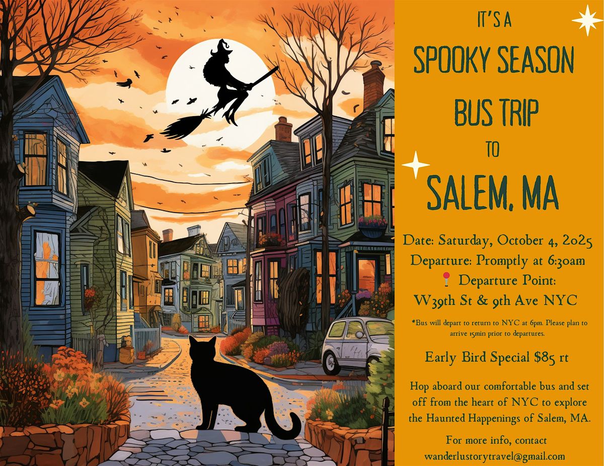 Don't miss out on this unique day trip to Salem during Spooky Season. Reserve your spot now and get ready for a day filled with history, culture, and Halloween fun!