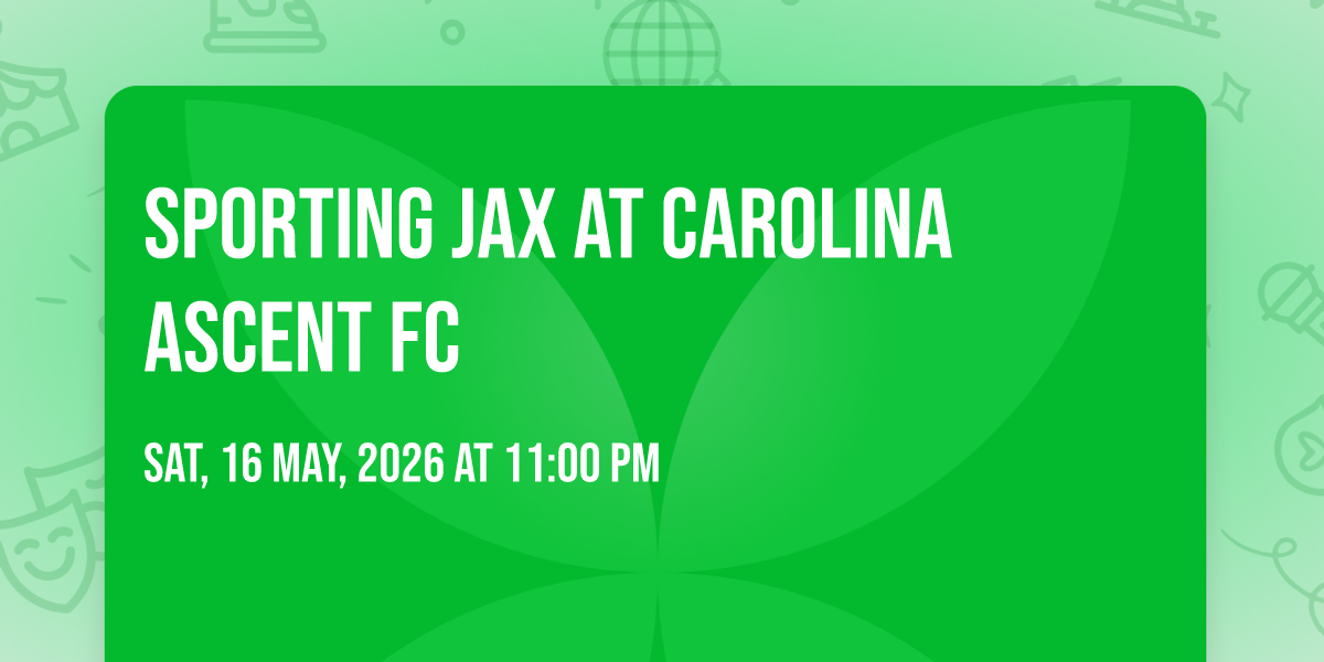 π Location: 35.2188, -80.8295π Prepare to be amazed at Sporting JAX at Carolina Ascent FC, the most anticipated gathering of the season! π Set against the stunning backdrop of American Legion Memorial Stadium in vibrant Charlotte, NC, this event promises to redefine your expectations. π Mark your calendars for May 16th, 2026 at 11:00 PM and get ready to immerse yourself in an atmosphere of wonder and excitement. β¨ From the moment you arrive, you'll be transported into a world where memories are made and stories come alive. They have crafted an experience that perfectly harmonizes entertainment, innovation, and community spirit. π Join us as we create moments that will be discussed for years!