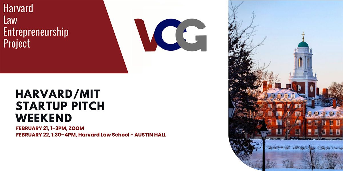 The Harvard Law Entrepreneurship Project (HLEP) and the Harvard Undergraduate Venture Capital Group (HUVCG) are excited to co-host the Harvard/MIT Startup Pitch Weekend this February 21-22nd! We eagerly invite you to join us for pitches for legal assistance or funding!