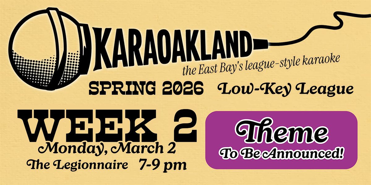 🎠KaraOakland Low-Key League Week 2: THEME TO BE ANNOUNCED • March 2nd • The Legionnaire, Oakland • League Play 7–9 PM • Open Karaoke After 9 PM • Free to attend • 21+