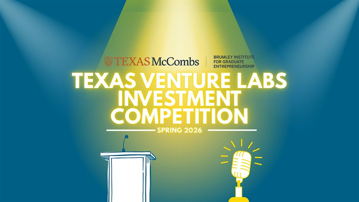 The Spring 2026 Texas Venture Labs Investment Competition will be held at Robert Rowling Hall on the University of Texas campus on May 1st. The top graduate student teams from the morning's Semifinal rounds will compete in the Finals from 2 PM until 5 PM with an awards ceremony and reception to follow.