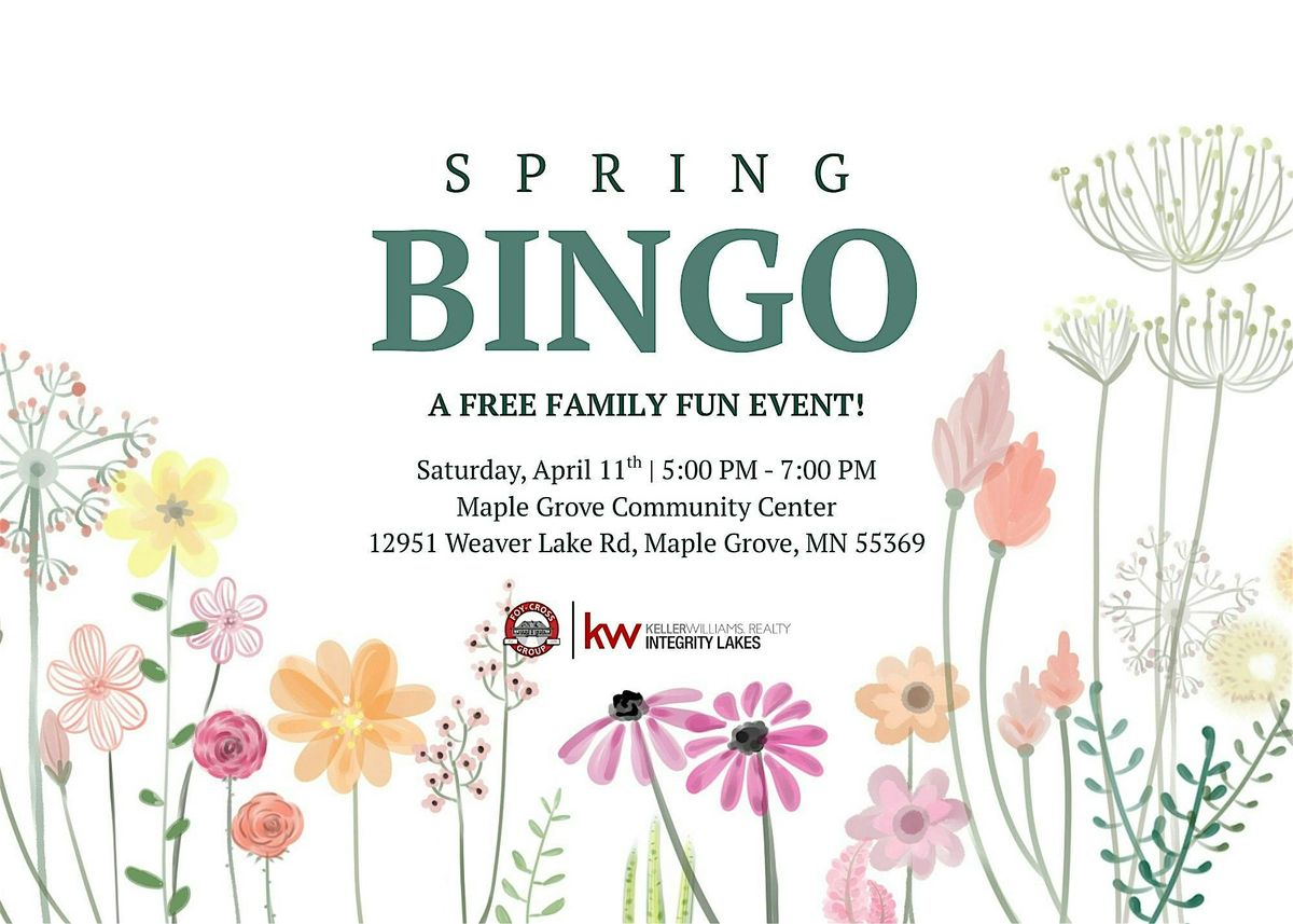 Join us for Spring Bingo on Saturday, April 11th from 5:00 PM to 7:00 PM at Maple Grove Community Center, located at 12951 Weaver Lake Rd, Maple Grove 55369.