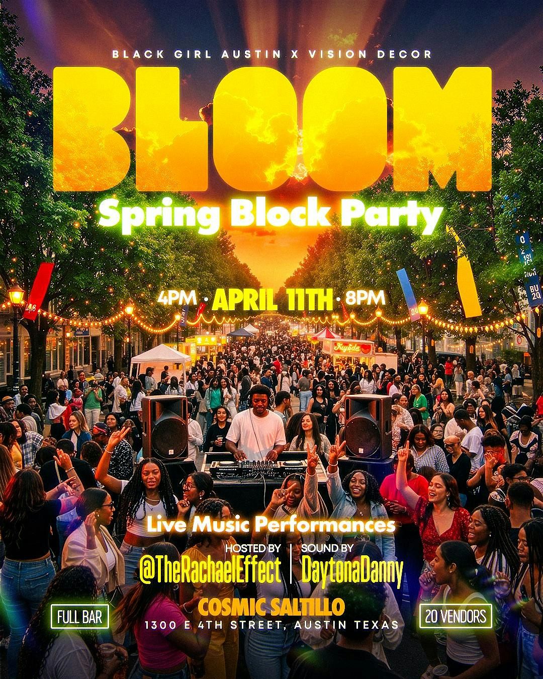 Join us on April 11th, 4-8 PM at Cosmic Saltillo for our Spring Block Party! Enjoy music by Daytona Danny, local performers, 20+ local vendors, and a full bar. Hosted by @TheRachaelEffect.