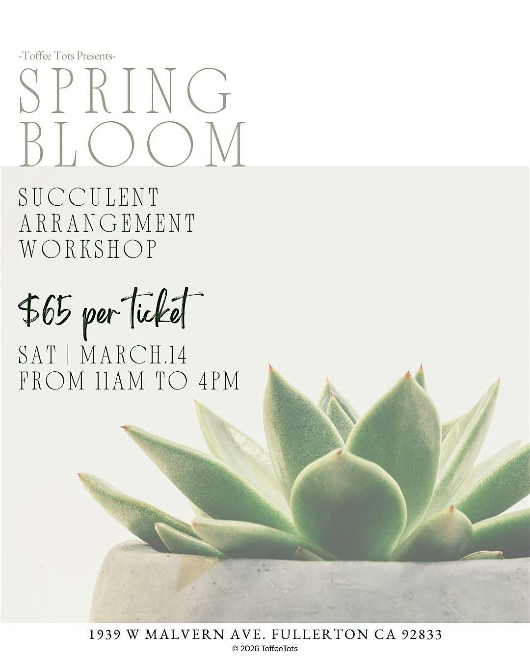 Join us for Spring Bloom, a relaxing succulent potting experience designed to welcome the new season.