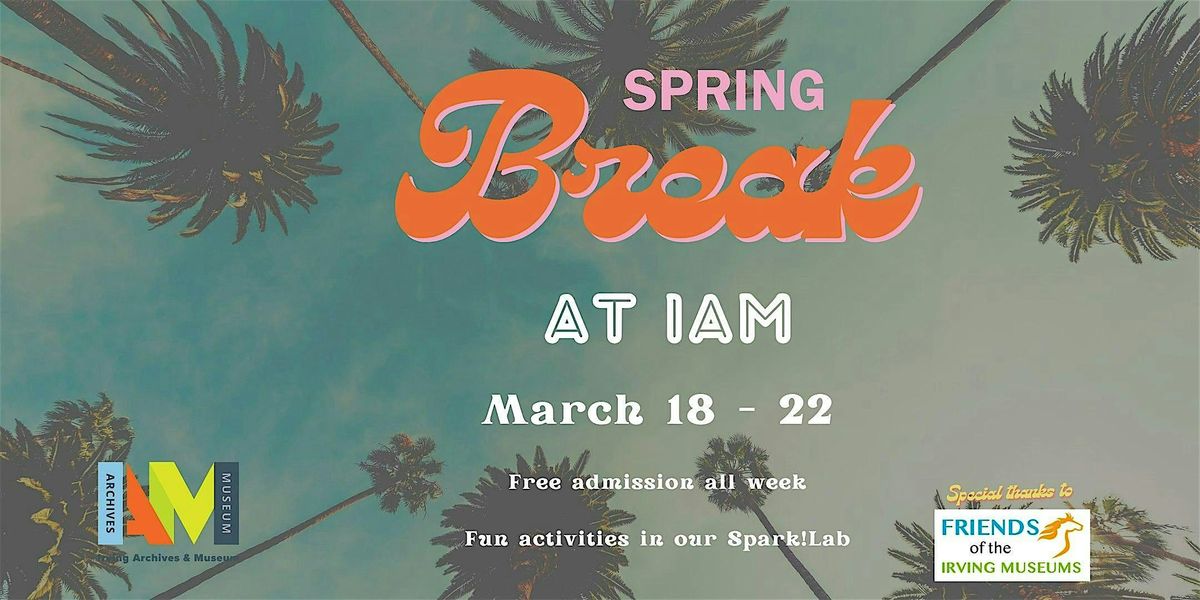 Happy Spring Break! Thanks to the Friends of the Irving Museum, admission will be free all week and there will be special activities in Spark!Lab for each day!
