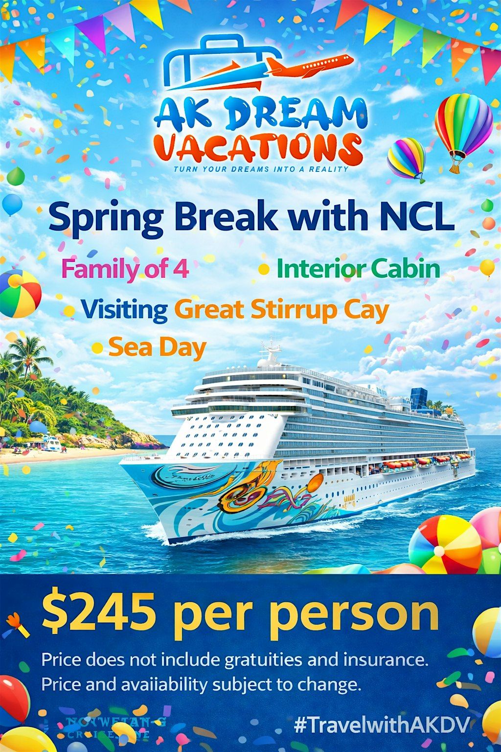 Calling all parents, caretakers, Spring break is loading. And I have you right here. Lock in this amazing cruise for a good ole time at GSC. I have cabins for 4 people, 3 people, 2 people, multiple cabins if you need them, connecting, etc.
