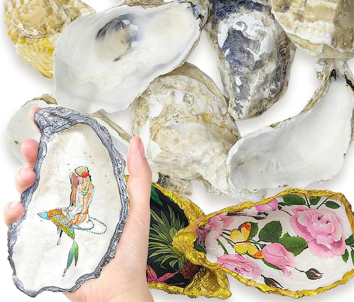 Drop by the taproom between the hours of 10:00am & 2:00pm for fun artsy workshop with educator and co-owner Jess! We gathered and cleaned old oyster shells from a friends's property and will be using the french method of decoupage to create these adorable trinket holders. All materials are non-toxic and recycled! Make a mess in our barn and enjoy not cleaning it up :)