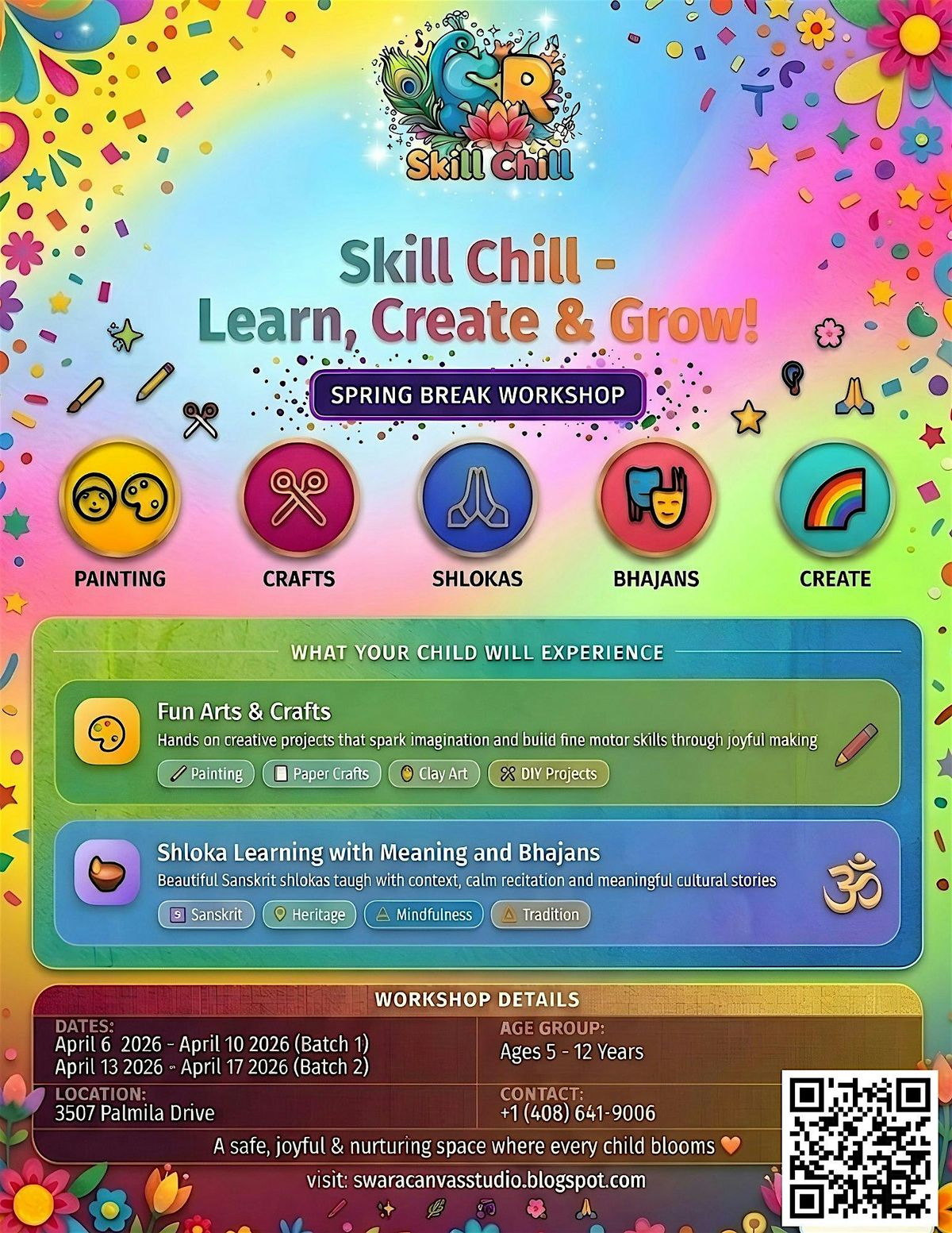 Spring Break kids workshop in San Jose with arts & crafts and shloka learning. Please visit swaracanvasstudio.blogspot.com for more info.