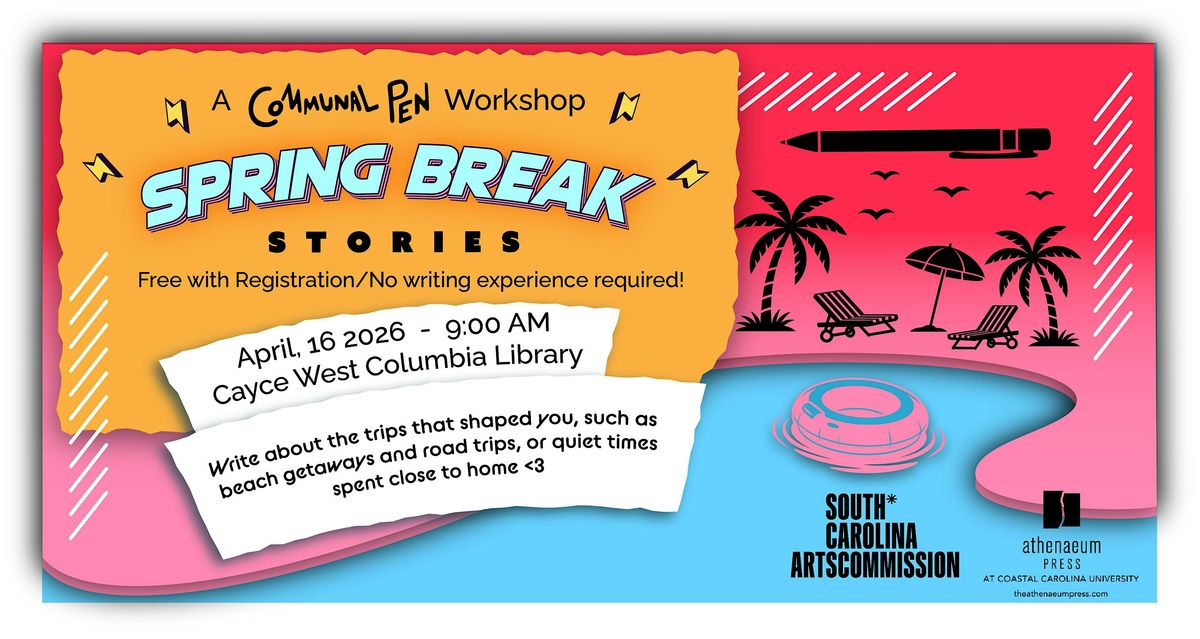 Spring break often means fun, parties, and chaos...but it could also mean curling up with a book and your cat for a week. In this workshop, you’ll be invited to write about the trips that shaped you, such as beach getaways and road trips, or the quiet stay-cations spent close to home. Guided prompts will encourage reflection on adventures, traditions, and the unexpected moments that vacations bring. Whether your memories are lighthearted or reflective, this workshop offers space to capture them and connect through shared storytelling.