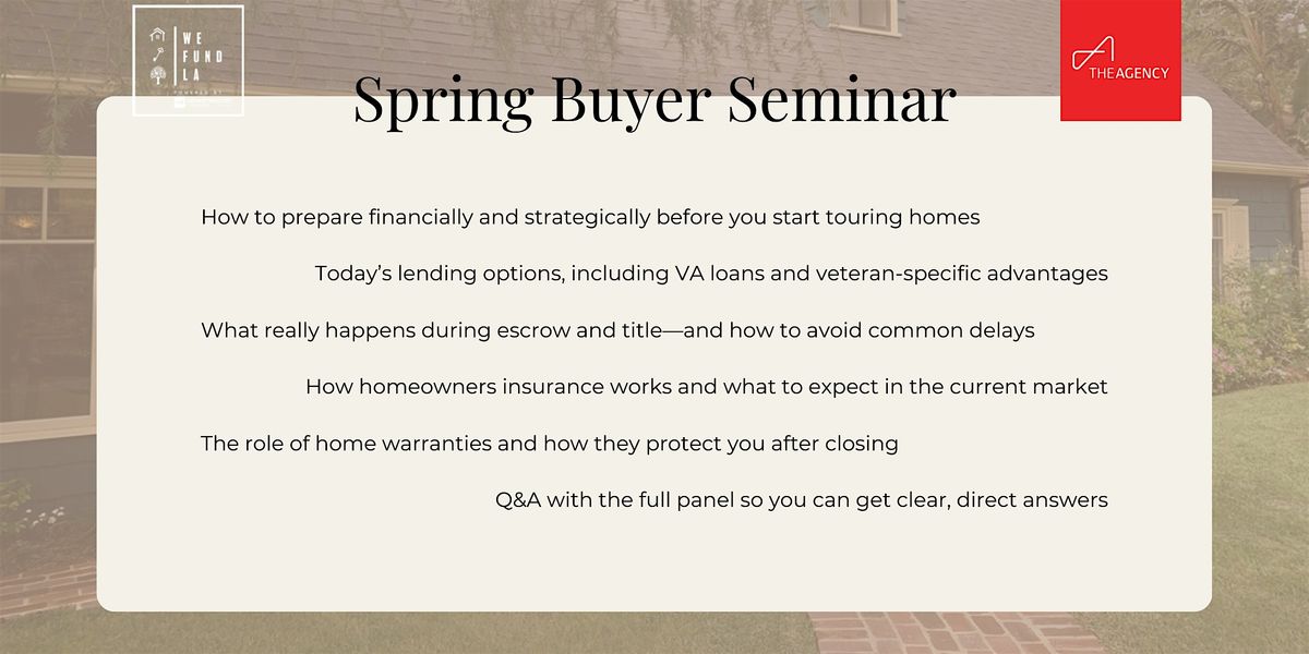 This seminar will also include a special emphasis on military and veteran buyers, with dedicated time to discuss VA loans, benefits, and strategies available to those who have served.