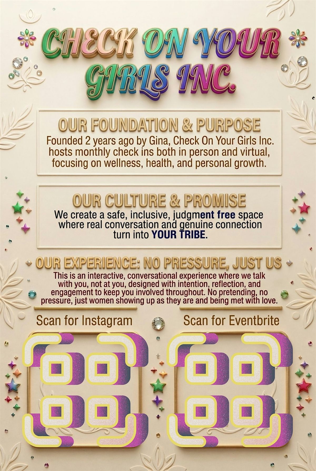 This is a supportive, judgment free environment where women can show up as they are, be heard, and pour back into themselves alongside a like minded community.