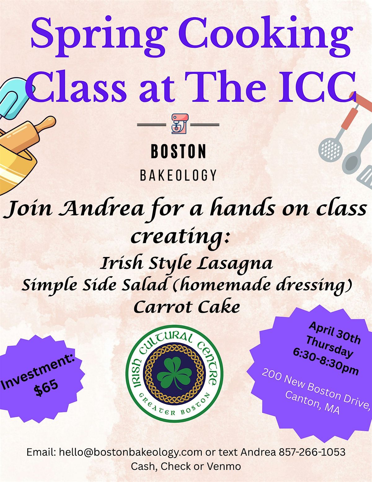 Back by popular demand, Boston Bakeology's Andrea Feeney returns to the ICC for a special Spring Cooking workshop on Thursday, April 30th!