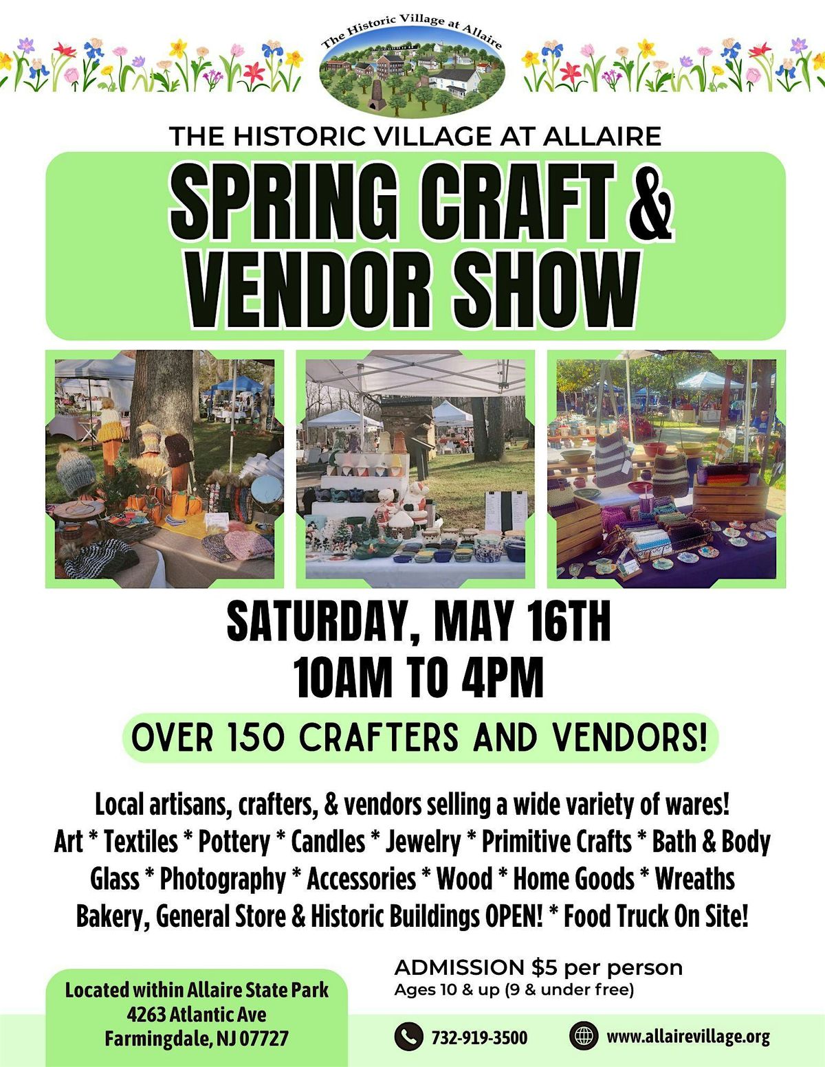 Admission is $5 per person 10 years old and up. All proceeds of the day to benefit the 501c3 nonprofit organization that operates Allaire Village, Allaire Village Inc.