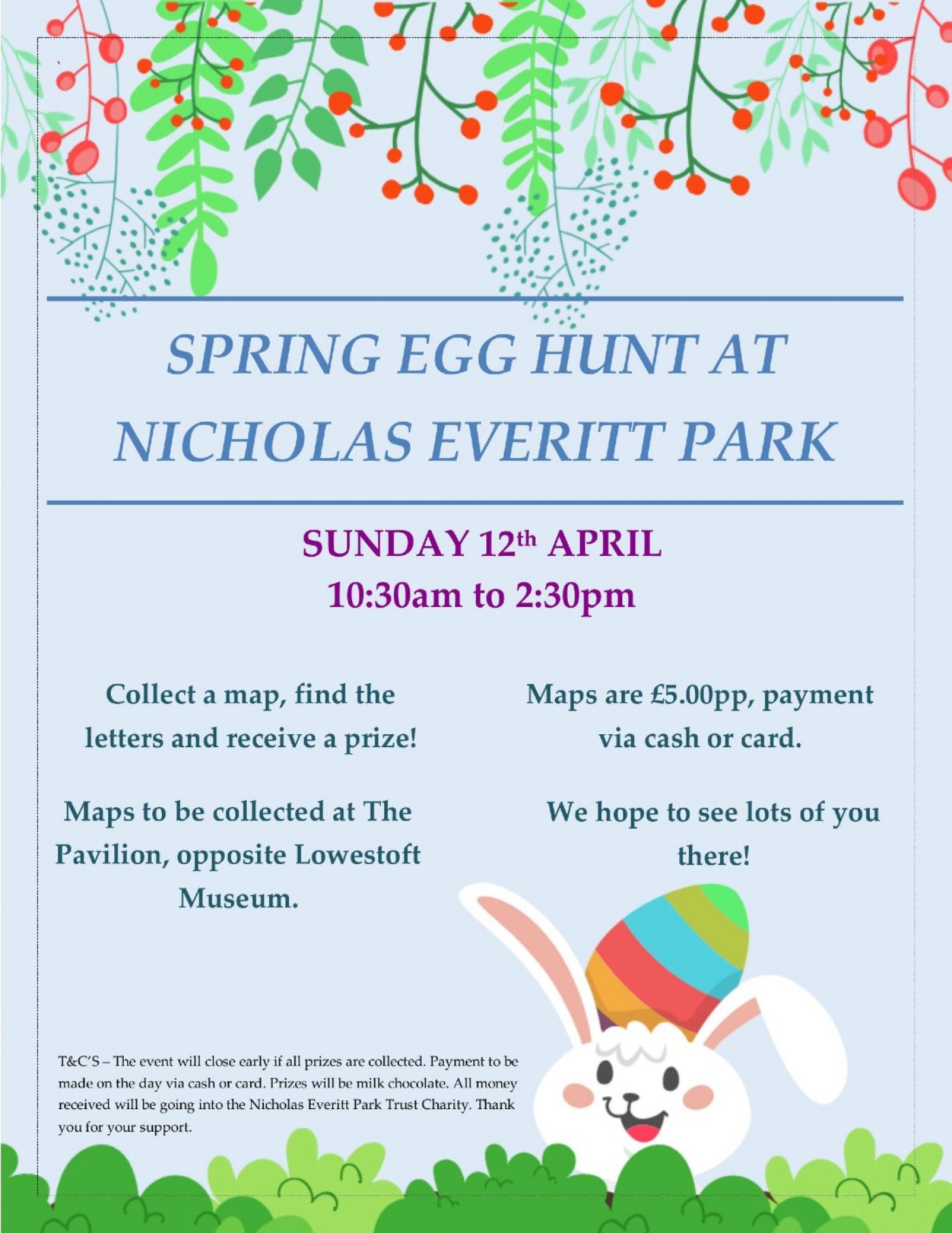 Remember, the hunt ends once all prizes are claimed or at the end time whichever comes first, so early arrival is key. Prizes will be milk chocolate. All funds raised during this fun-filled event will be dedicated to supporting the Nicholas Everitt Park Trust Charity, making your participation even more meaningful.