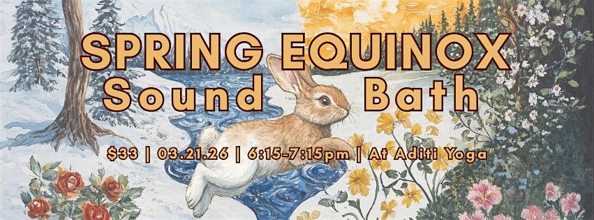 We’ll meet on March 21, 2026 at 6:15 PM at Aditi Yoga. Come as you are and enjoy a rejuvenating evening to celebrate the changing of the seasons!