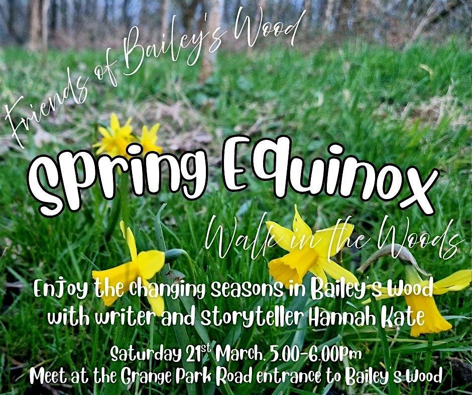 Join us in the woods to mark the Spring Equinox and enjoy the changing seasons. This is a gentle walk, suitable for most abilities and ages, with seasonal conversation and stories led by writer Hannah Kate. Meet at the Grange Park Road entrance to the woods.