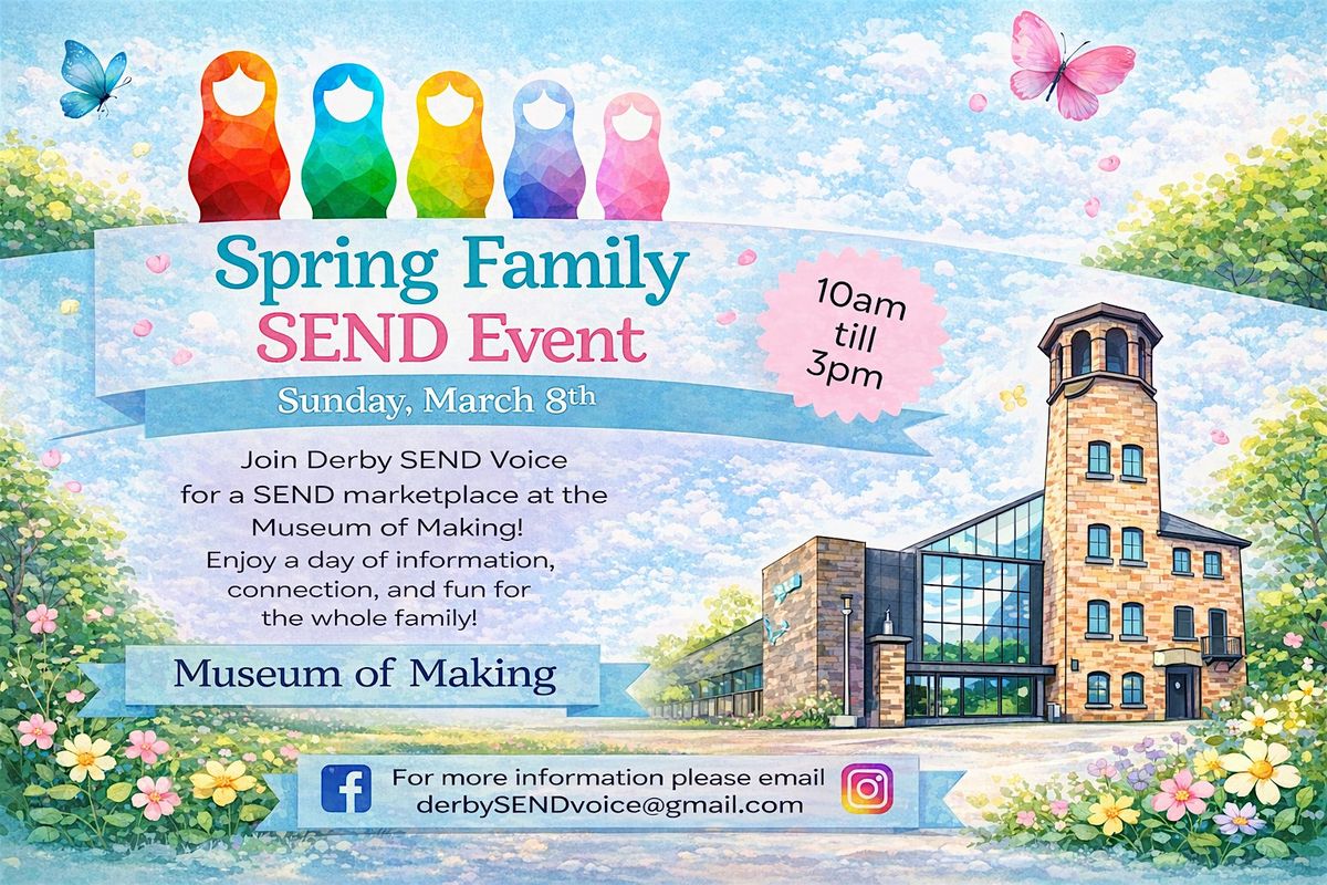 Join us for a fun and friendly in-person gathering at the Spring Family SEND Event! It’s the perfect opportunity to find out what SEND services and organisations are available in the local area, connect with other families in a relaxed, welcoming space, and enjoy a day designed with inclusion at its heart. You can chat with local providers, ask questions, share experiences, and discover support that fits your family’s needs. Whether you’re new to SEND or have been navigating the system for years, everyone is invited to come along, meet others, and feel part of our Derby SEND community.