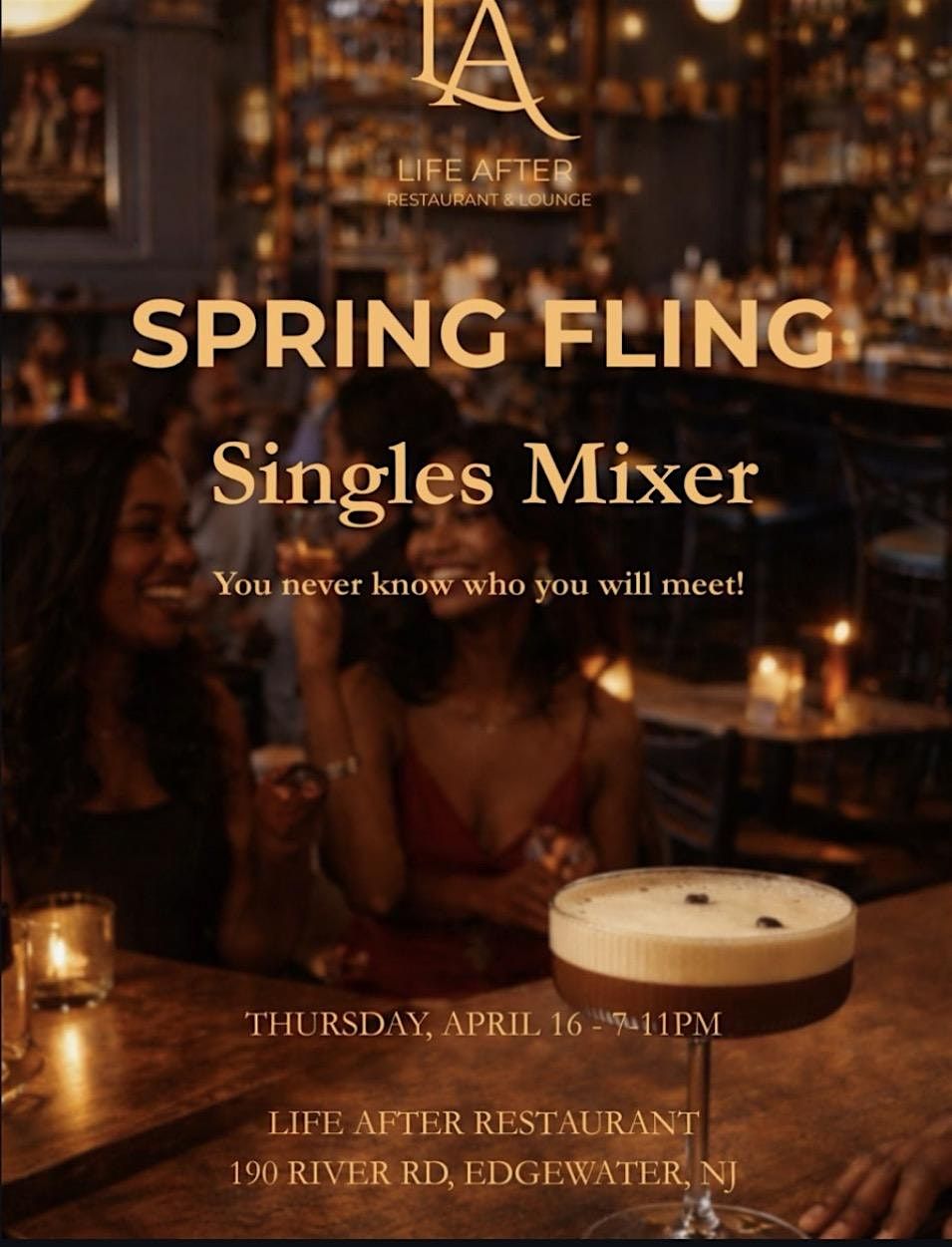 Join us Thursday, April 16 | 7β11PM for our Spring Fling Singles Mixer at Life After.Agenda