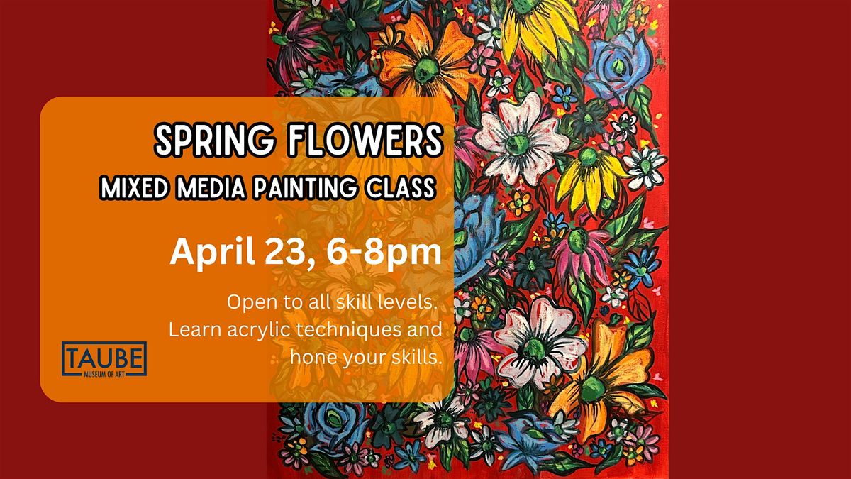 Guests will paint an 11x14 canvas with mixed media flowers. All materials provided. Light refreshments will be available. Proceeds support the Taube Museum of Art.