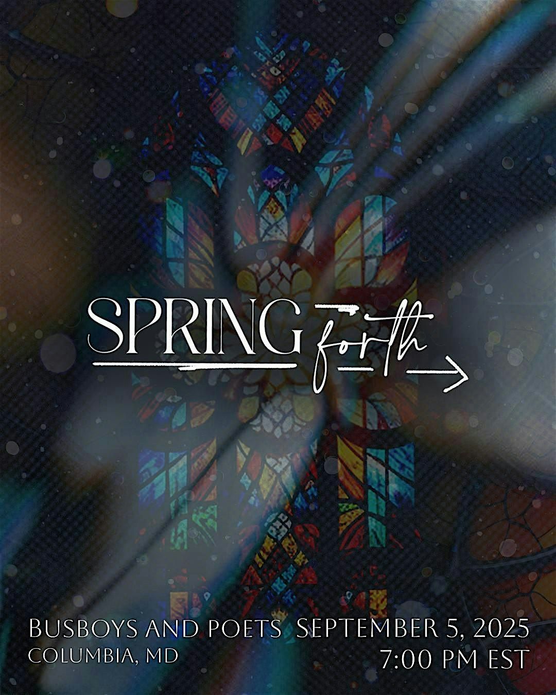 The Lord is doing a new thing: Spring Forth! Come to our night of Christ-centered fellowship and entertainment. Created to ignite and inspire souls across denominational lines, Spring Forth is an evening of Christian poetry and psalmists. With featured artists and an open mic, you are bound to be moved. Poets, spoken word artists, and musicians from around the DMV are invited to come and be a blessing to the audience during our open mic session.