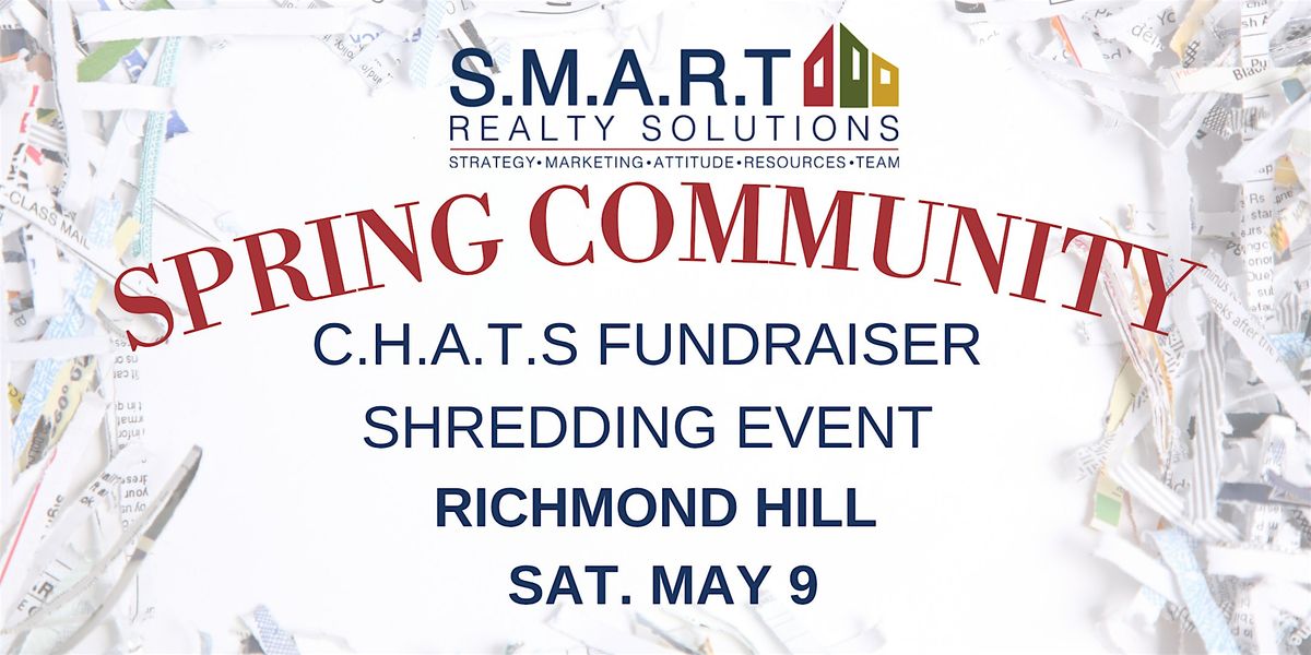 We will be hosting an outdoor fundraiser. At this event, people come at their designated time slots with all their unwanted documents to shred. The shredding is done while you wait. There is no cost, although we do request a donation of $10 per box of shredding, with all money raised being donated to CHATS of York Region.