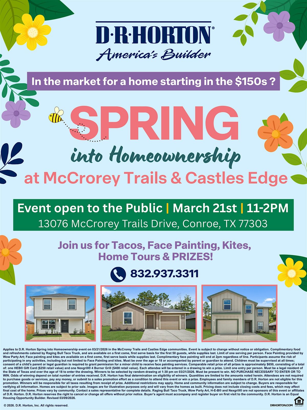 In the market for a home starting in the $150s? Join us at McCrorey Trails for Tacos, Face Painting, Kites, Home Tours, and PRIZES!!!