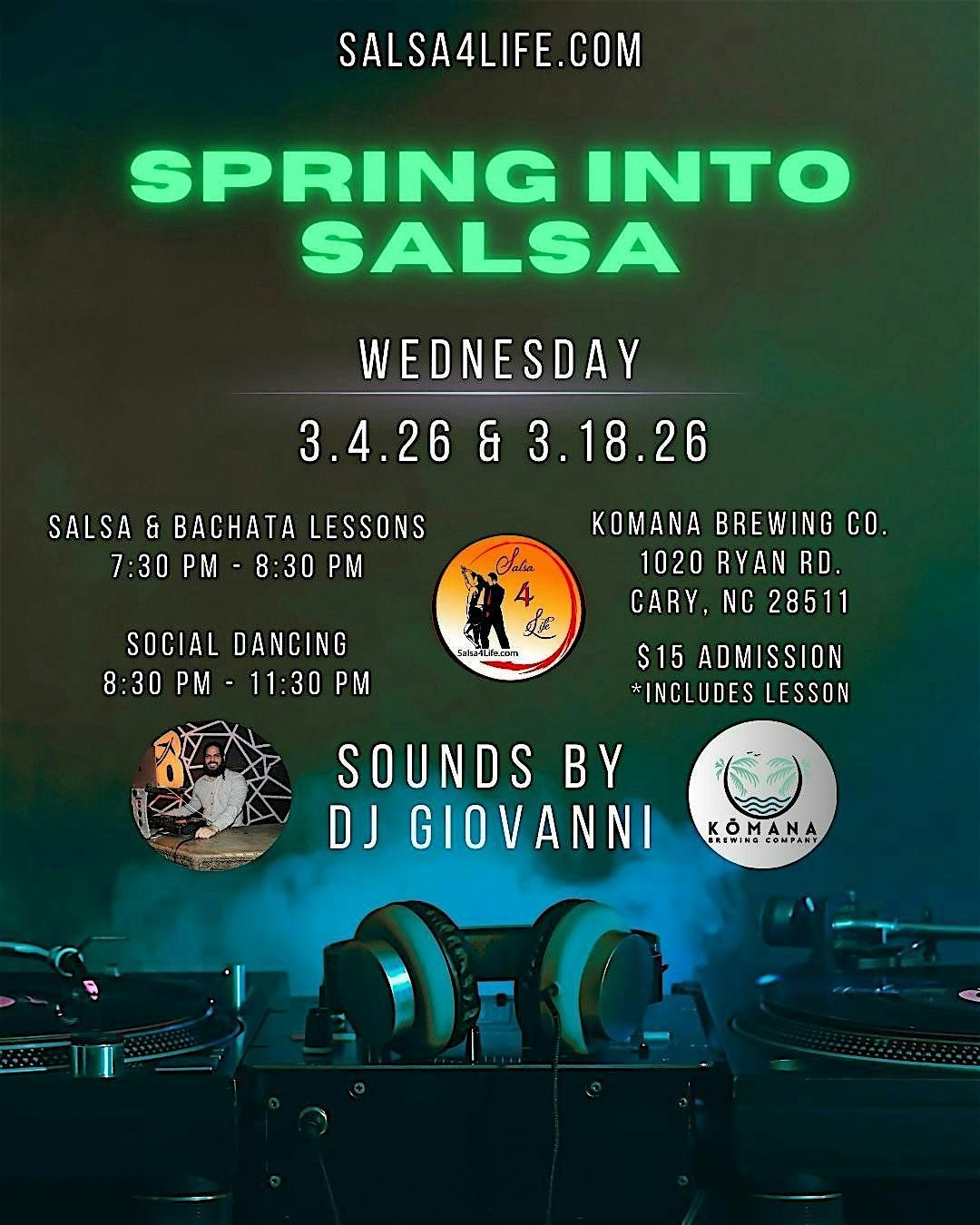 Join us on March 18, 2026 at 7:30 PM for a fun-filled evening of salsa music and dancing.